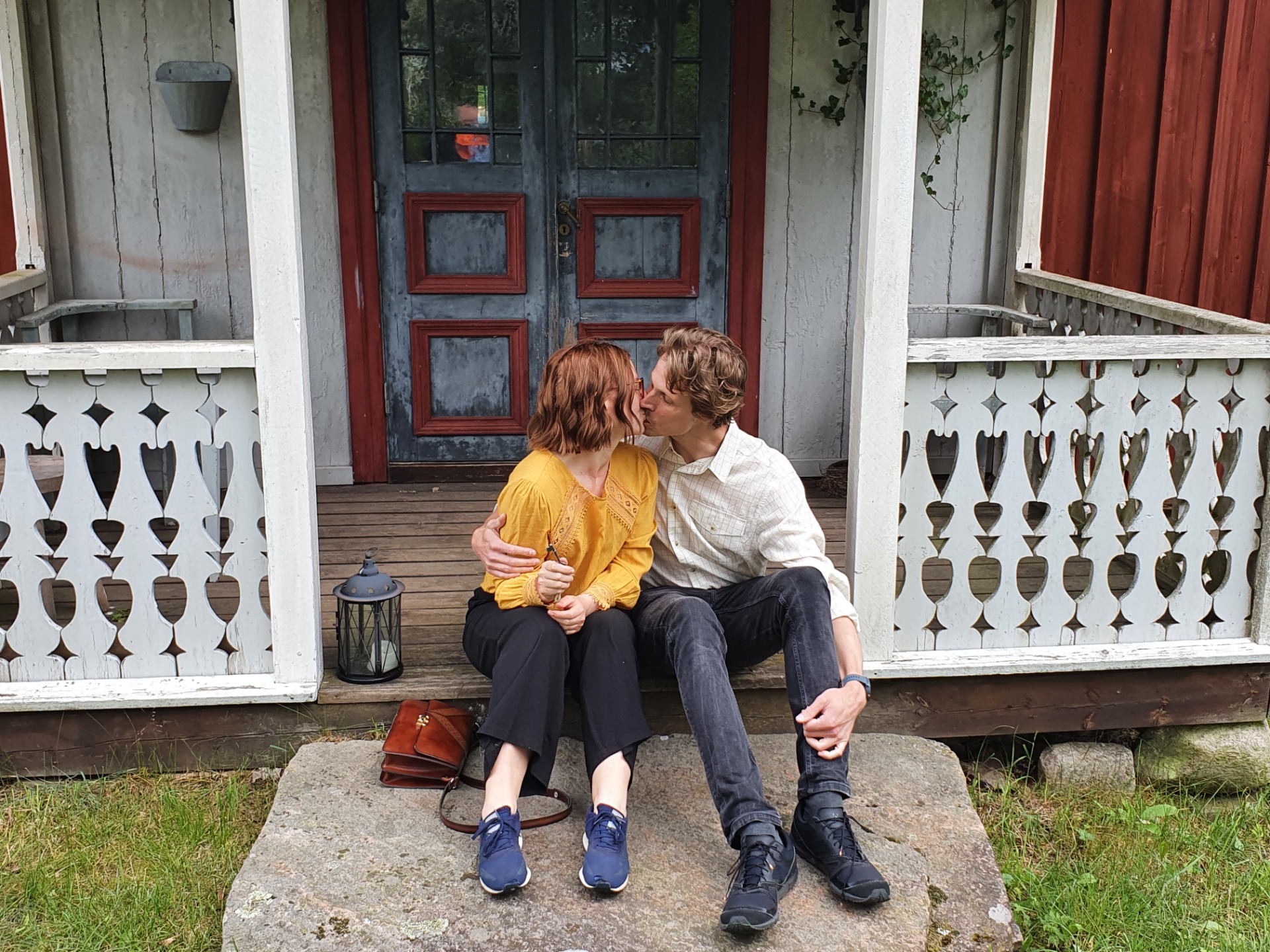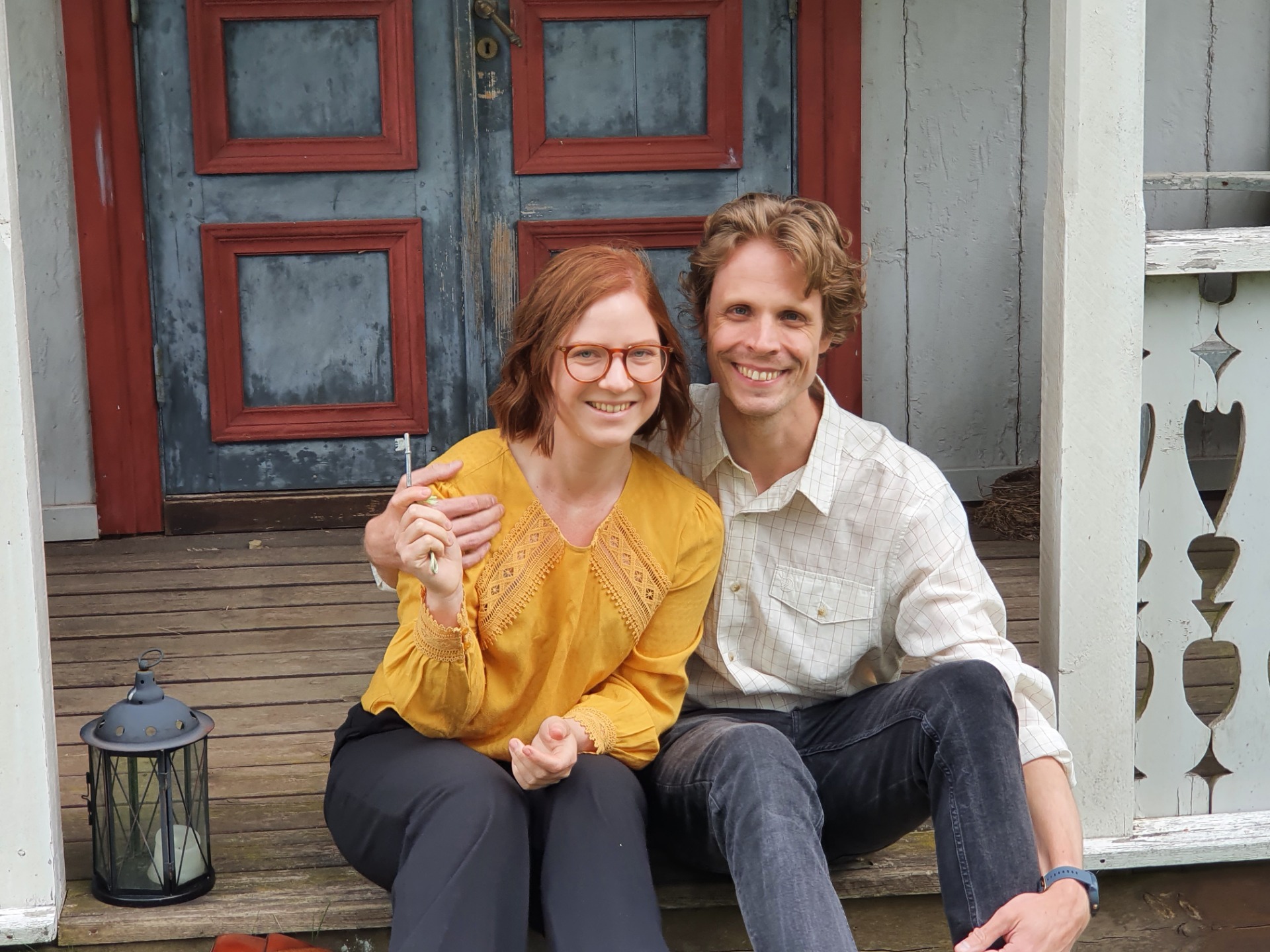 På bilden ovan är vi helt nyförlovade den 1:a september 2023, med lilla Hedvig växande i magen.